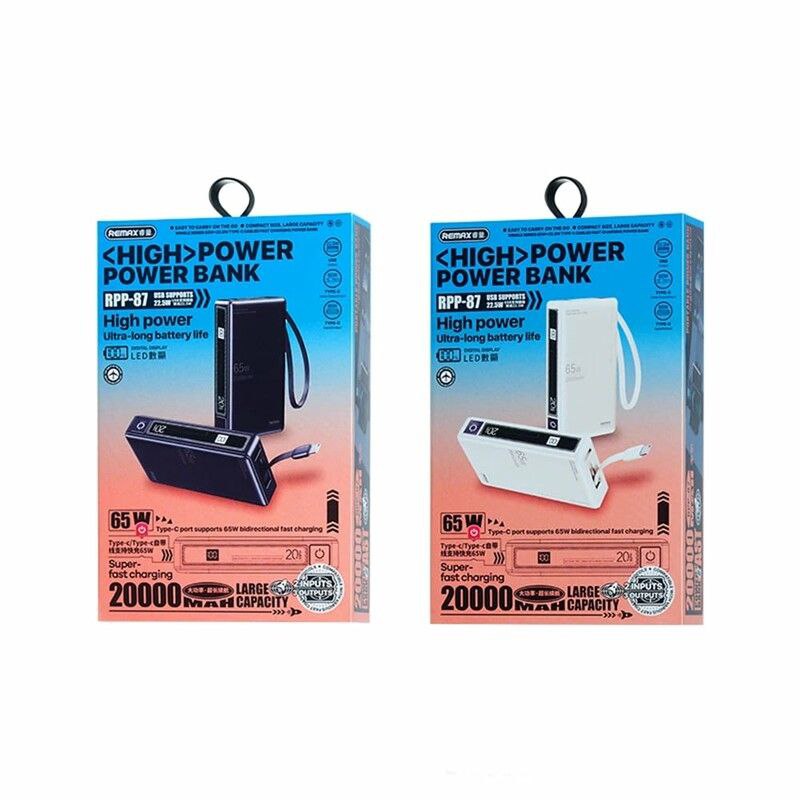 مدل RPP-87 از برند معتبر Remax، نهتنها از نظر ظاهری و کیفیت ساخت چشمگیر است، بلکه از لحاظ امکانات فنی نیز کاملاً حرفهای طراحی شده. این پاوربانک بهصورت همزمان قابلیت شارژ چند دستگاه را دارد و با داشتن پورتهای متنوع و توان بالای خروجی، گزینهای عالی برای استفاده روزمره، سفر، محل کار و حتی در شرایط اضطراری است.