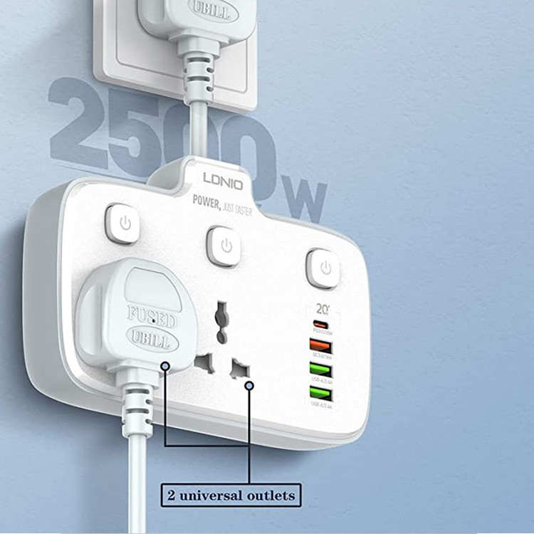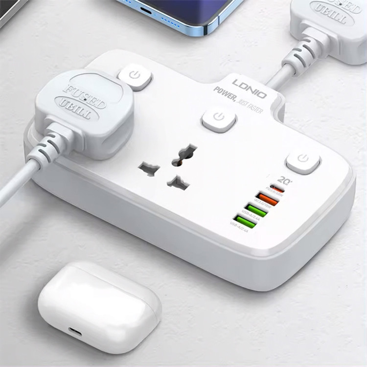 با زیاد شدن دستگاه های الکترونیکی و احتیاج به تامین انرژی آن ها نیاز به چند راهی ها هم جهت سهولت کار بیشتر شده است. چندراهی های جدید درگاه های متفاوتی هم در اختیار شما قرار میدهد تا کار شما رو راحتتر کند. چندراهی LDNIO SC2413 گزینه مناسبی برای شماست چون علاوه بر دو خروجی برق، سه خروجی USB و یک خروجی تایپ سی دارد. جنس چندراهی الدینیو از ABS و PC نسوز ساخته شده است. قسمتی که به برق متصل میشود از نوع EU است که یعنی دوشاخه است و در ایران رایج است و نیاز به خرید تبدیل جداگانه ندارید. خروجیهای برق روی چندراهی هم از نوع Universal هستند و با دو شاخههای UK، US و EU سازگارند و شما از تبدیل بی نیاز می کنند. سیم اتصال طول کمی دارد و در حدی است که بتوانید تا 180 درجه زاویه دلخواه خود را تنظیم کنید. برای کنترل جریان برق الدینیو 3 کلید برای هر خروجی برق و حتی مجموعه پورتها روی بدنه به تفکیک در نظر گرفته که میتوانید جریان برق هر کدام را قطع و یا وصل کنید که در هنگام به خطر افتادن ایمنی نیز به صورت خودکار عمل می کند. ولتاژ ورودی چندراهی SC2413 برابر 100 تا 250 ولت و حداکثر جریان ورودی 10 آمپر می باشد. پورت تایپ سی روی چندراهی با پشتیبانی از قابلیت شارژ سریع PD دارای جریان/ولتاژ خروجی 5V/3A-9V/2.22A-12V/1.67A با حداکثر توان خروجی 20 وات می باشد. یکی از خروجیهای USB به رنگ نارنجی با پشتیبانی از شارژ سریع QC3.0 دارای جریان/ولتاژ خروجی 5V/3A-9V/2A-12V/1.5A با حداکثر توان خروجی 18 وات می باشد. پورت های خروجی USB به رنگ سبز هر کدام با پشتیبانی از شارژ Auto ID دارای جریان/ولتاژ خروجی 5V/2.4A و حداکثر توان 12 وات می باشند. توان خروجی کل چندراهی برق الدینیو برای پورتهای USB و Type C برابر 20 وات است و برای خروجی های برق هم 2500 وات است. می توانید همزمان از خروجیهای این چند راهی استفاده کنید و 6 دستگاه را شارژ نمایید. فقط مانند بسیاری از شارژرها و چندراهی ها در این صورت توان خروجی بین آن ها تقسیم می شود. چندراهی الدینیو برای حفاظت از کودکان دارای درپوش روی حفره سوکت های برق است. همچنین در صورت تشخیص اضافه بار در مدار و یا رطوبت جریان را قطع می کند. عمق حفره های سوکت برق به اندازه کافی است تا دوشاخه بیرون نماند. میتوانید با خیال راحت از خرید یک چندراهی با کیفیت و ایمن لذت ببرید.