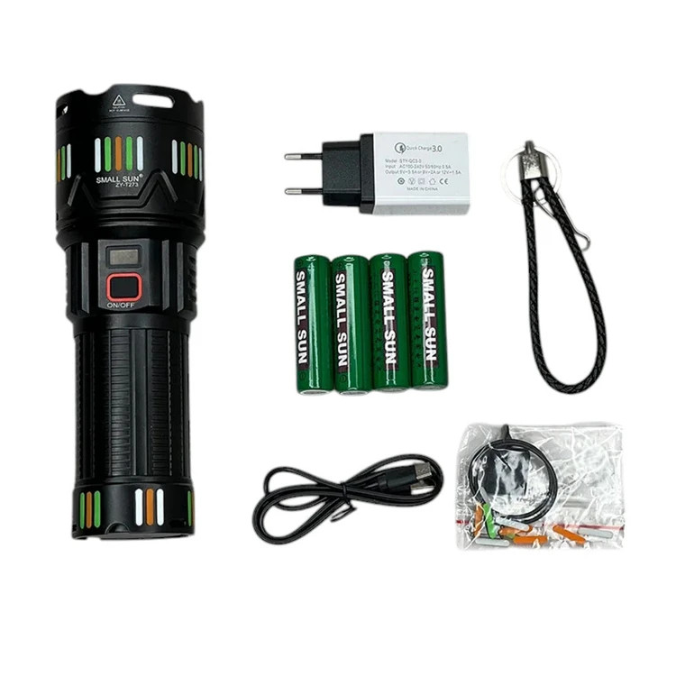 چراغ قوه زومدار اسمال سان مدل zy-t273 با برد نور 1200 متر می باشد و دارای 4 حالت نوردهی می باشد . و با قدرت روشنایی 4500 لومن می باشد . و با قابلیت زوم که واضح 1200 متر رو میزند و در حالت پخش نوری 250 تا 500 متر را کاملا روشن می کند . و دارای صفحه نمایشگر شارژ میباشد که دقیقا نشان می دهد درصد شارژ چراغ قوه چقدر باقی مانده و وقتی که درصد شارژ چراغ قوه به 20 درصد آمد حتما حتما باید به شارژ بزنید و تا 100 درصد کامل کامل شارژ بشود و برای این لازم است حداقل 2 کامل کامل به شارژ وصل شده باشد . و این چراغ قوه اسمال سان مدل zy-t273 دارای 4 عدد باتری اصلی هک شده اسمال با سایز 18650 2400 میلی آمپر رنگ سبز می باشد . و اقلام این چراغ قوه : یک عدد دکمه یدک ، ورینگ و کش و غیره میباشد و باتری های این چراغ قوه حداقل تا نزدیک به 4 سال کار میکنند و هیچ عیب و ایرادی پیدا نمیکنند . و این چراغ قوه حتی اگر کم ازش استفاده کنید باید طوی 1 ماه باید حداقل 1 بار به شارژ بزنید چون برای سلامتی باتری و خود چراغ قوه خیلی خوب می باشد . برای اینکه این چراغ قوه زیباتر رونمایی بشود و طرافدار های بیشتر و جذب کند تو کارخانه برای این چراغ قوه از یک جعبه حمل فوقالعاده محکم از مدل جعبه حمل مدل سامسونتی استفاده کرده اند و حتی جعبه خود چراغ قوه خیلی جذاب و خیلی هم محکم می باشد.