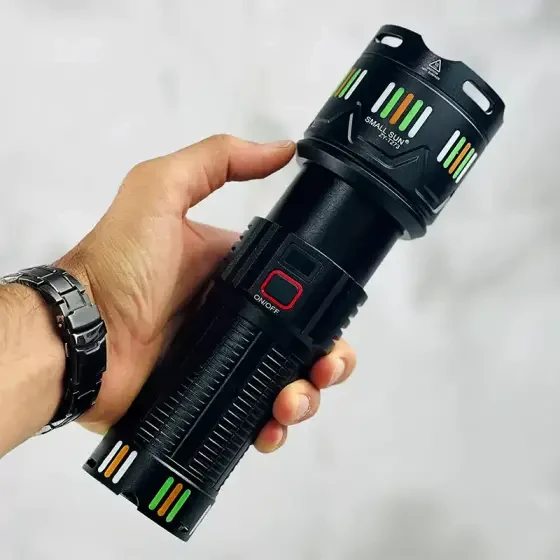چراغ قوه زومدار اسمال سان مدل zy-t273 با برد نور 1200 متر می باشد و دارای 4 حالت نوردهی می باشد . و با قدرت روشنایی 4500 لومن می باشد . و با قابلیت زوم که واضح 1200 متر رو میزند و در حالت پخش نوری 250 تا 500 متر را کاملا روشن می کند . و دارای صفحه نمایشگر شارژ میباشد که دقیقا نشان می دهد درصد شارژ چراغ قوه چقدر باقی مانده و وقتی که درصد شارژ چراغ قوه به 20 درصد آمد حتما حتما باید به شارژ بزنید و تا 100 درصد کامل کامل شارژ بشود و برای این لازم است حداقل 2 کامل کامل به شارژ وصل شده باشد . و این چراغ قوه اسمال سان مدل zy-t273 دارای 4 عدد باتری اصلی هک شده اسمال با سایز 18650 2400 میلی آمپر رنگ سبز می باشد . و اقلام این چراغ قوه : یک عدد دکمه یدک ، ورینگ و کش و غیره میباشد و باتری های این چراغ قوه حداقل تا نزدیک به 4 سال کار میکنند و هیچ عیب و ایرادی پیدا نمیکنند . و این چراغ قوه حتی اگر کم ازش استفاده کنید باید طوی 1 ماه باید حداقل 1 بار به شارژ بزنید چون برای سلامتی باتری و خود چراغ قوه خیلی خوب می باشد . برای اینکه این چراغ قوه زیباتر رونمایی بشود و طرافدار های بیشتر و جذب کند تو کارخانه برای این چراغ قوه از یک جعبه حمل فوقالعاده محکم از مدل جعبه حمل مدل سامسونتی استفاده کرده اند و حتی جعبه خود چراغ قوه خیلی جذاب و خیلی هم محکم می باشد.