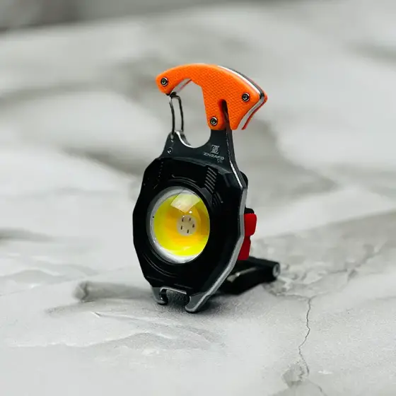 در کنار قسمت کارابین شکل یا همان گیرهی آویز چراغ، یک تیغهی کوچک طراحی شده است. این تیغه داخل بدنه جای داده شده است و خطری ندارد؛ اما میتوان با وارد کردن طناب و بند به محفظهی تیغه، آنها را برش داد.