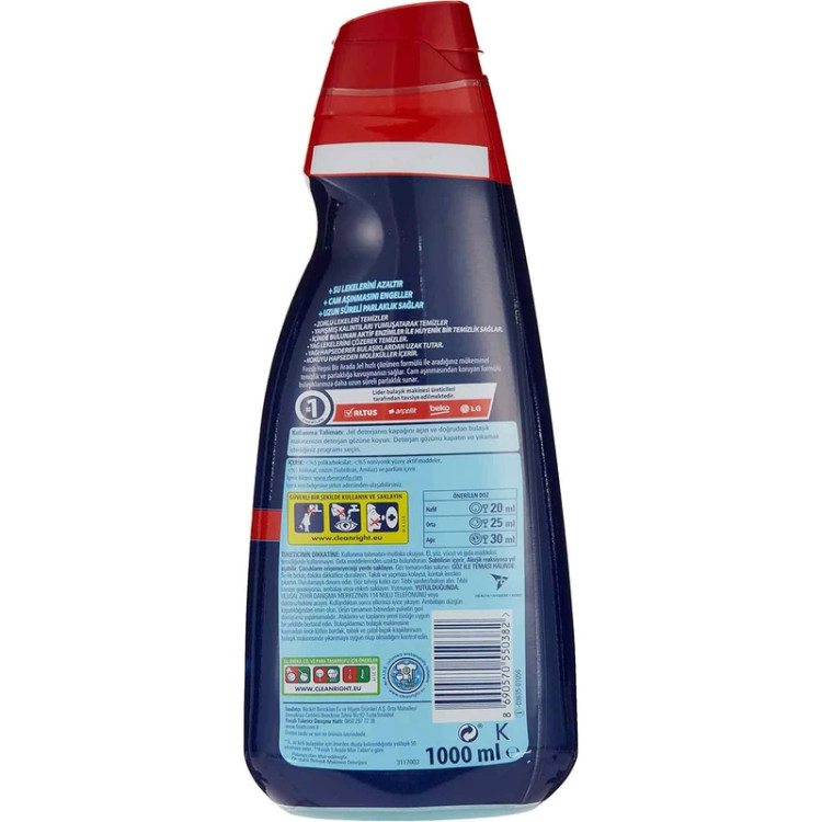 ژل مدل از برند «فینیش» (Finish) حجمی معادل 1000 میلیلیتر دارد که در محفظهای پلاستیکی قرار گرفته است. حجم 1000 میلیلیتری فینیش را حدودا 50 مرتبه میتوان مورد استفاده قرار داد که این تعداد نسبی است و به حجم مصرف در هر بار شستوشو بستگی دارد. حالت ژلی و غلیظ فینیش عملکرد و اثر مطلوبی خواهد داشت. ظروفی که بهطور روزمره استفاده میشوند، حتما باید تمیز و بهداشتی باشند؛ چون رابطهی مستقیمی با سلامت بدن دارند. ظروف آلوده و درست شستهنشده به تجمع باکتریها و ایجاد بیماری منجر خواهند شد. مشخصترین ویژگی ژل فینیش تمیزکنندگی قوی آن است. ژل فینیش مخصوص شستوشوی ظروف است و قادر است بهخوبی ظروف را تمیز و شفاف کند. با استفاده از ژل ظرفشویی فینیش ظروفی درخشان و تمیز خواهید داشت.