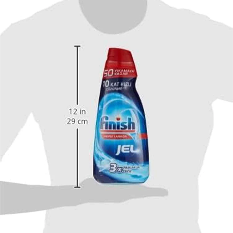 ژل مدل از برند «فینیش» (Finish) حجمی معادل 1000 میلیلیتر دارد که در محفظهای پلاستیکی قرار گرفته است. حجم 1000 میلیلیتری فینیش را حدودا 50 مرتبه میتوان مورد استفاده قرار داد که این تعداد نسبی است و به حجم مصرف در هر بار شستوشو بستگی دارد. حالت ژلی و غلیظ فینیش عملکرد و اثر مطلوبی خواهد داشت. ظروفی که بهطور روزمره استفاده میشوند، حتما باید تمیز و بهداشتی باشند؛ چون رابطهی مستقیمی با سلامت بدن دارند. ظروف آلوده و درست شستهنشده به تجمع باکتریها و ایجاد بیماری منجر خواهند شد. مشخصترین ویژگی ژل فینیش تمیزکنندگی قوی آن است. ژل فینیش مخصوص شستوشوی ظروف است و قادر است بهخوبی ظروف را تمیز و شفاف کند. با استفاده از ژل ظرفشویی فینیش ظروفی درخشان و تمیز خواهید داشت.