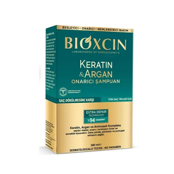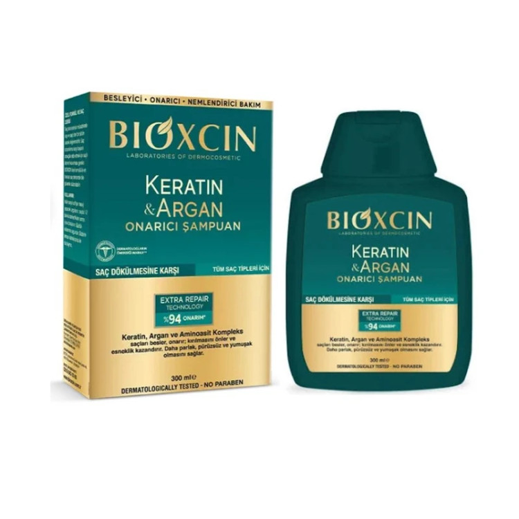 شامپو bioxcin گیاهی ضدریزش ترمیم کننده با فرمولاسیون قدرتمند و با بهره گیری از عصاره های کاملا طبیعی و انواع ویتامین ها و مواد معدنی برای کنترل ریزش مو طراحی شده است . شامپو ترمیم کننده ضد ریزش bioxcin حاوی آرگان کراتین، حاوی کراتین هیدرولیز شده و روغن ارگان اصل باعث ترمیم و مرطوب شدند . موهای آسیب دیده ای میشود که درخشش و رطوبت خود را از دست داده اند. وجود بیوکمپلکس B11 در شامپوی ترمیم کننده بیوکسین، باعث تقویت و جلوگیری از ریزش مو میشود . شامپو ترمیم کننده بیوکسین بدون پارابن، عطر و مواد حساسیت زا بوده و برای انواع مو و بخصوص پوست سر حساس بسیار سازگار می باشد