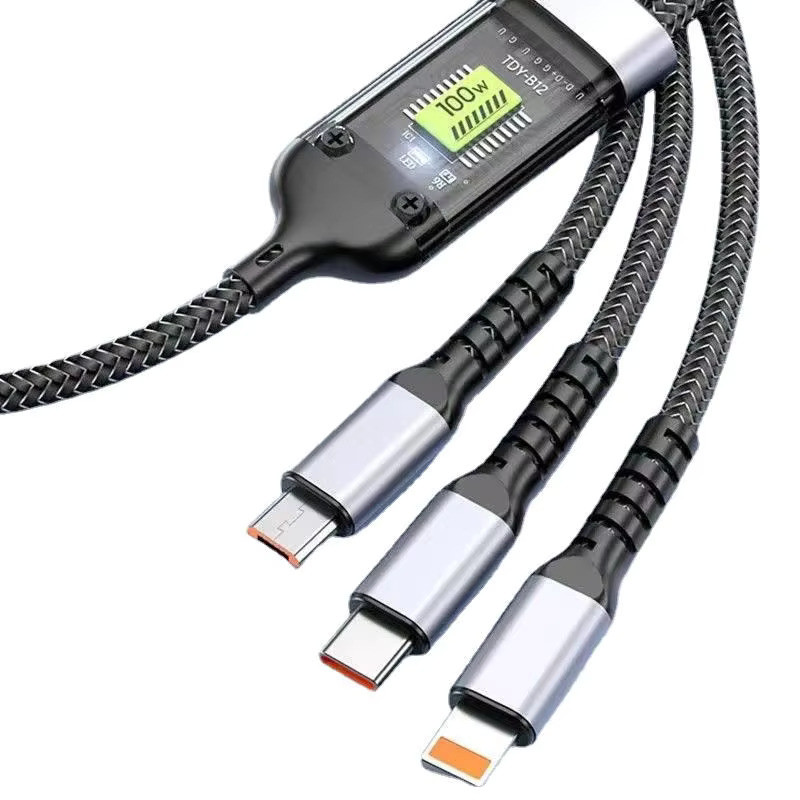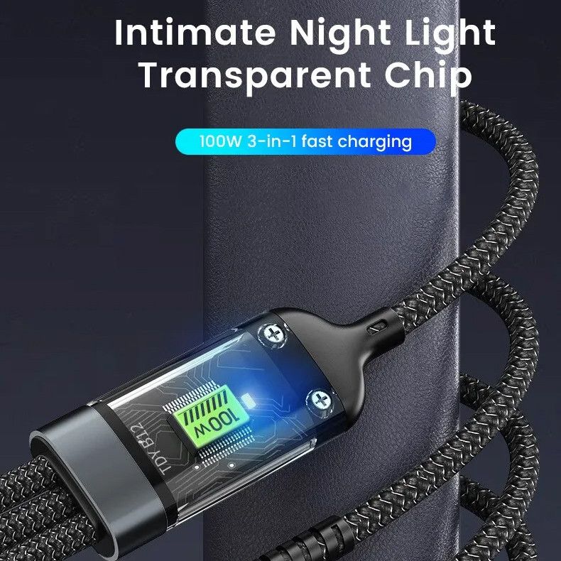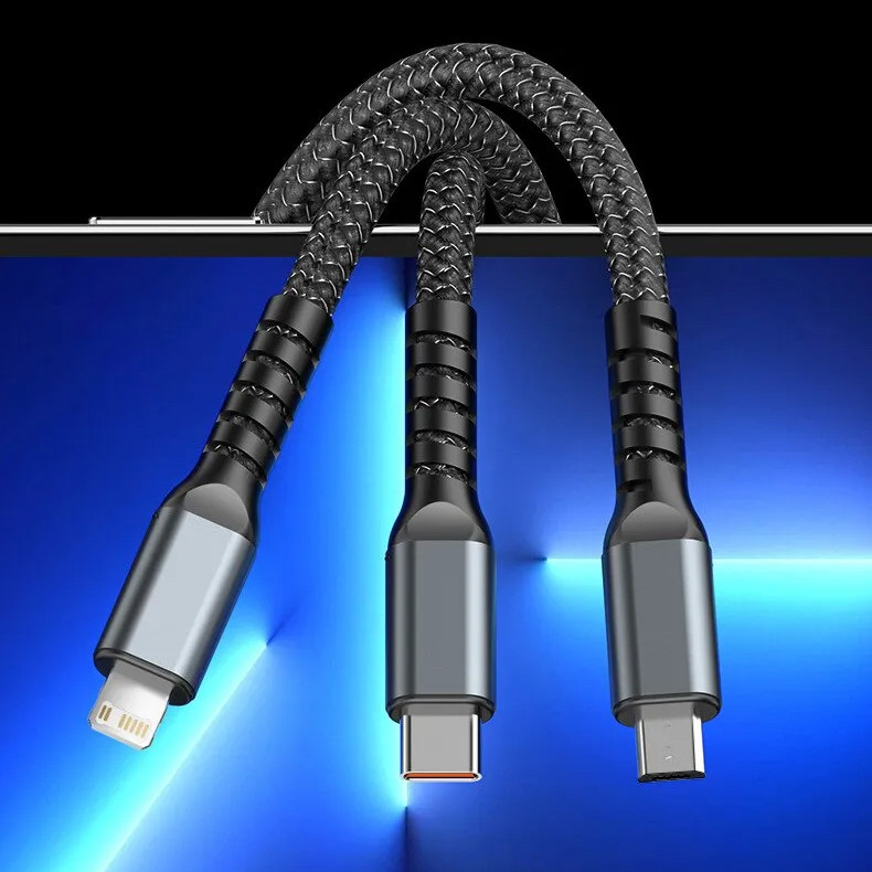 کابل تبدیل USB به microUSB / USB-C / لایتنینگ توزو مدل 3IN1 100W طول 1.2 متر