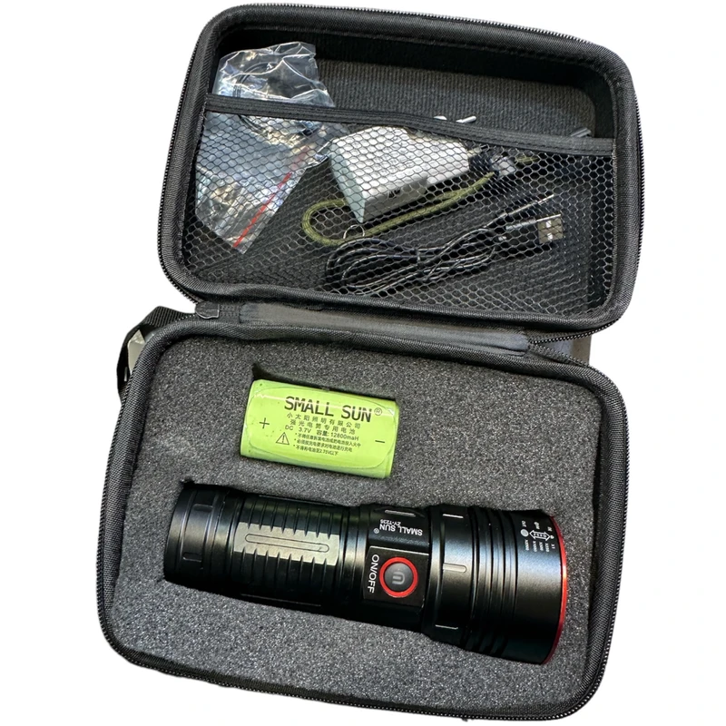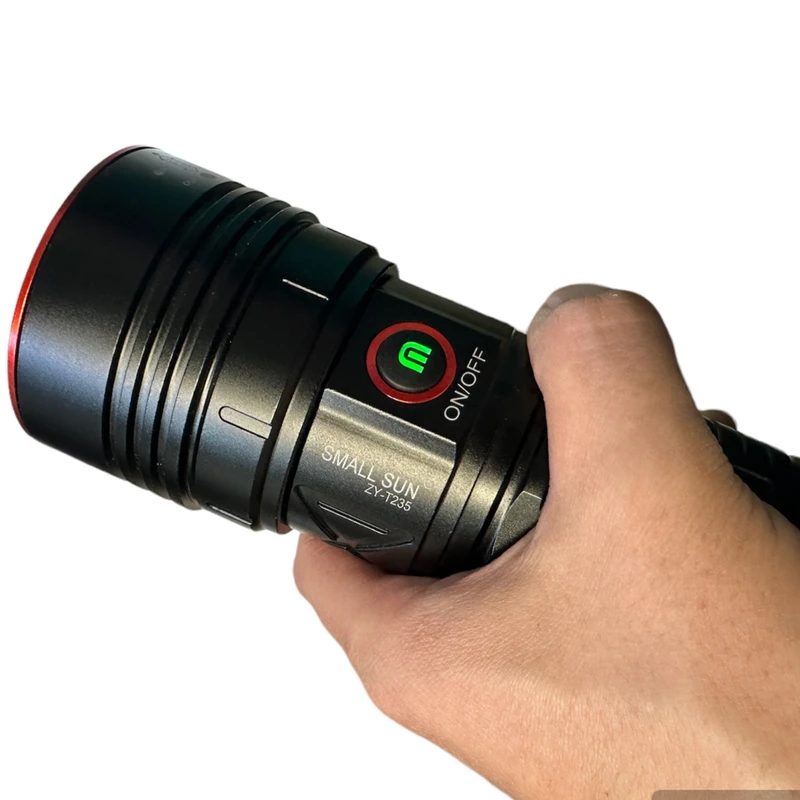 چراغ قوه اسمال سان مدل T235 یکی از قوی ترین چراغ قوه زوم دار می باشد این چراغ قوه در حالت زوم شده پرتاب نوری نزدیک به1.2کیلومتر دارد و در حالت معمولی تا 100 متر را مانند یک پروژکتور روشن میکند ، از دیگر ویژگی های این چراغ می توان به بدنه فلزی ، ابعاد مناسب ، وزن کم اشاره کرد. بدنه این چراغ قوه کاملا ضدآب می باشد و در برابر ضربه ، گرد و خاک نیز مقاوم است ، چراغ قوه در ابعاد مناسبی طراحی شده و در استفاده های طولانی مدت باعث خستگی نمی شود ، چراغ قوه اسمال سان مدل t235 دارای یک پک 4 عدد باتری 18650 با ظرفیت 12800 میلی آمپر می باشد ، مدت زمان مناسب برای شارژ این باتری بزرگ 7 ساعت می باشد ، باتری این چراغ قوه با شارژ کامل در حالت پر نور 3 ساعت و در حالت کم نور 4 ساعت نور دهی دارد.